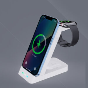 - Carregamento Três em Um: Carregue simultaneamente seu smartphone, AirPods e iWatch com um único dispositivo, economizando tempo e espaço.